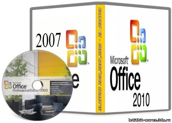 В данную сборку включены Microsoft Office 2003 Professional, Microsoft Office 2007 Standart, Microsoft Office 2010 Professional Plus, а также пакеты обновления к ним: для Microsoft Office 2003 и 2007 от 02.02.2011, для Microsoft Office 2010 Professional Plus от 11.03.2011. Версии и апдейтпаки с автоматической установкой. В Office 2003 и 2007 лекарство вшито, для Office 2010 присутствует активатор. Все версии полные-ничего не вырезалось.